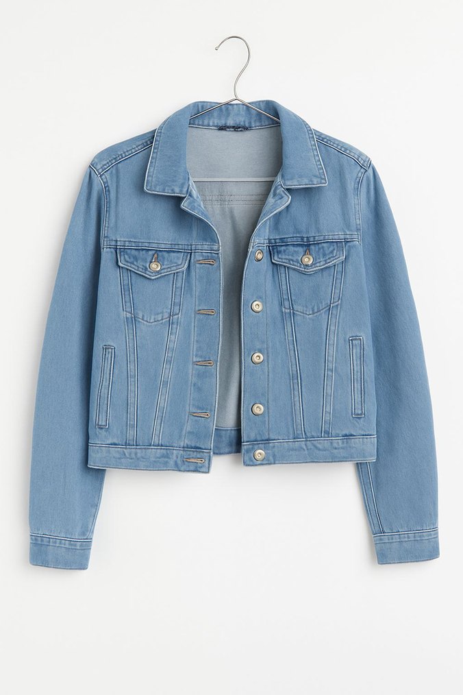 Düğmeli, notched lapel yaka ve uzun kollu mavi denim ceket. Salaş kesimiyle günlük ve sokak stiline uygundur.