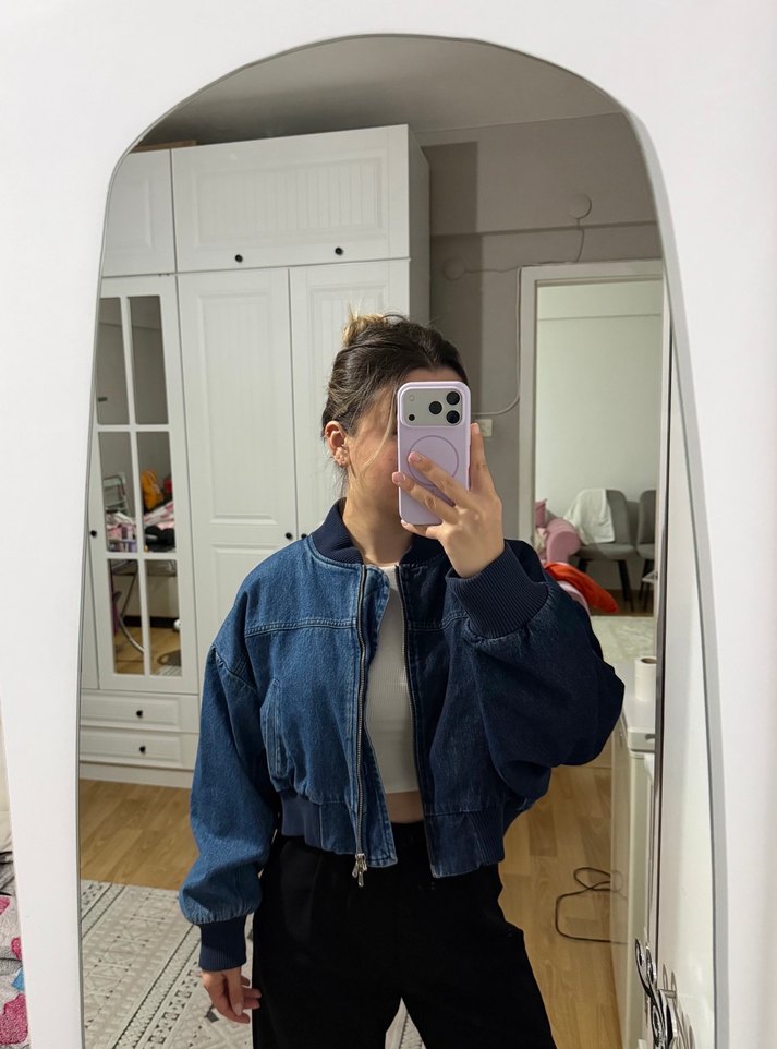 Çift renkli bomber kot ceket