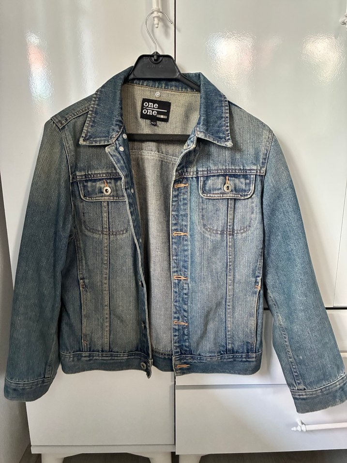 düğmeli ön kapamalı, uzun kollu, bol kesim ve kesik yaka detaylı kadın denim ceketi. Günlük rahat stil için uygundur.