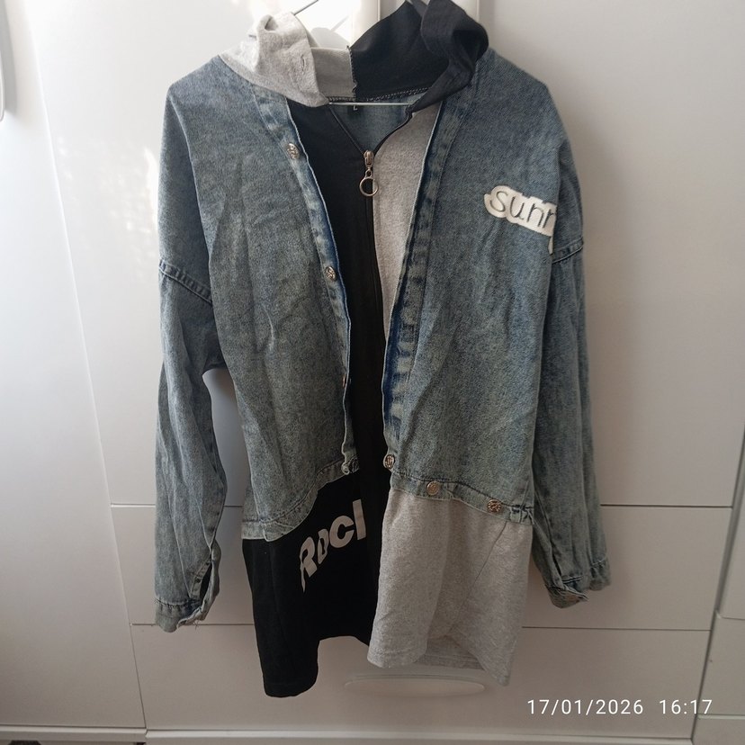 kot renkte, düğmeli, uzun kollu ve normal boyda kadın denim ceket. Salaş kesimi ve crew yaka ile günlük kullanıma uygun.