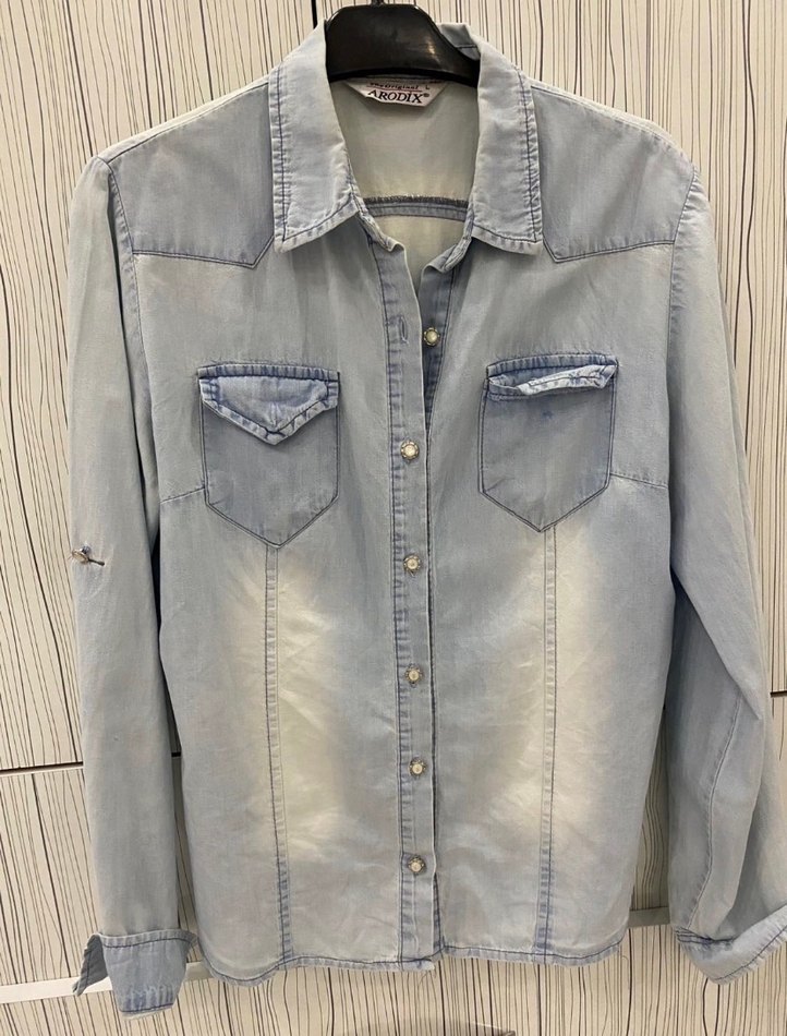 Kot Denim Kadın Gömlek, Düğmeli, Uzun Kollu