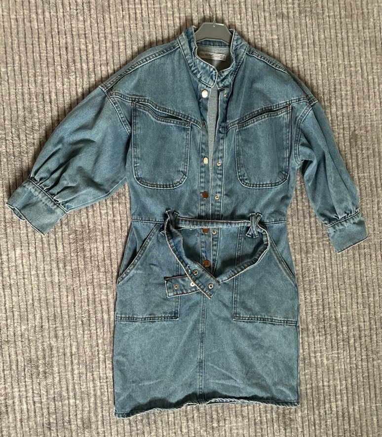 Midi kol kemerli kot elbise 2 kez kullandım