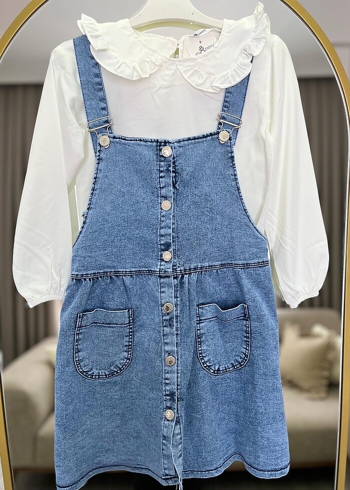 Kız çocuk kot gömlekli salopet 7/. 9/. 10 yaş aralığı