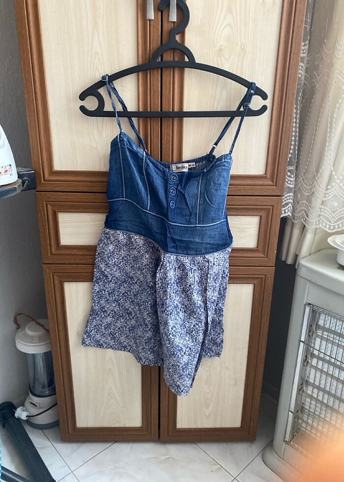 Yazlık mini kot ve çiçek detaylı elbise