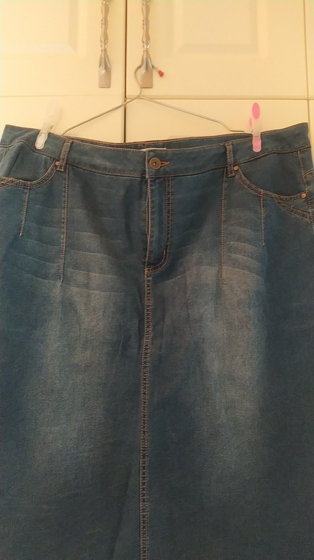 Mavi kot kumaştan yapılmış, düğmeli ve salaş kesim midi etek. Parlak yüzeyiyle gündelik kullanıma uygundur. hazırdır.