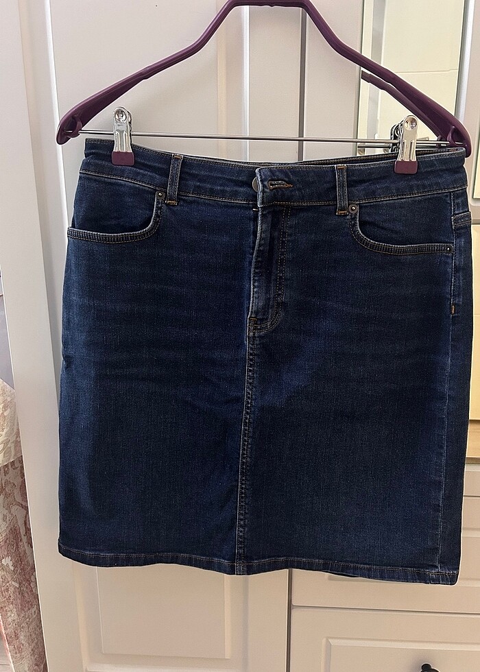 Boyu dizin üstünde kalıyor. 40 bedene uygundur. Koyu lacivert. Defosu yok. Hediye olarak geldi ama değişim kartı olmadığı için bedeni büyük geldi bu yüzden satıyorum.