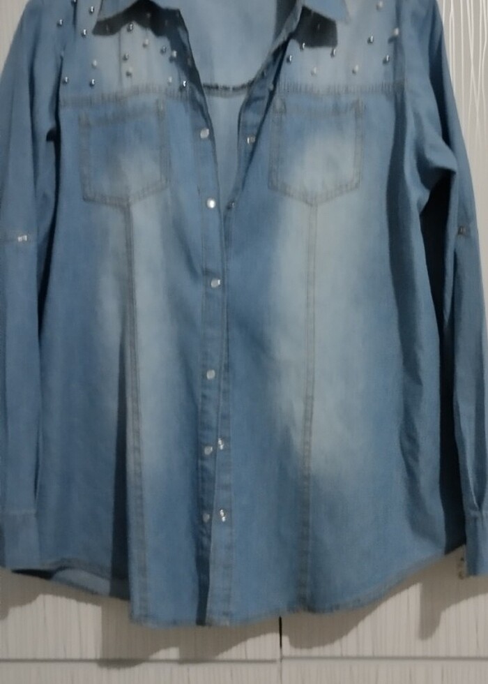 İncili kot gömlek