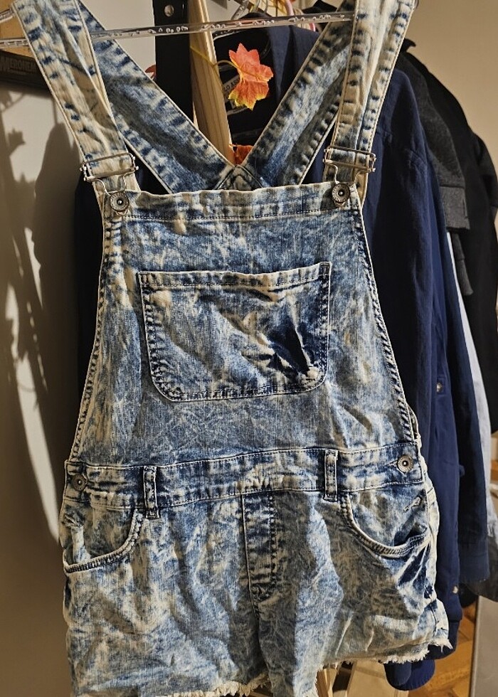 Çok rahat esnek kumaştan mini şort kot jeans salopet L bedendir vücudun şeklini alır çok az kullanıldı dilerseniz yıkanmadan ve ütülenmeden yollanmaz yumoş kokusuyla elinize ulaşır. Ayar yerlerş vardır askı boyları dilediği gibi ayarlanabilir