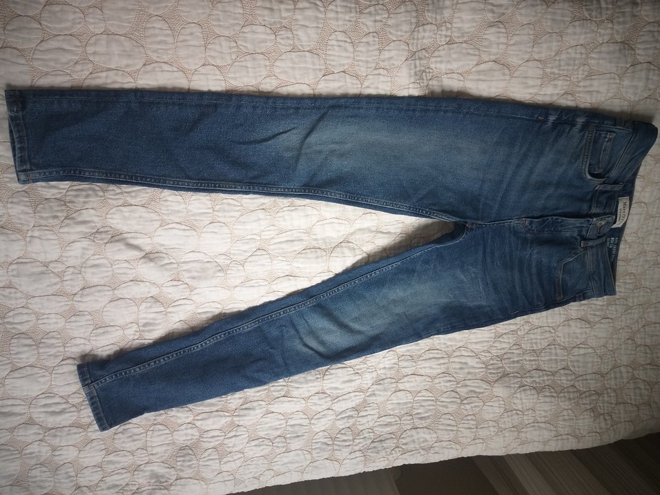 Lacivert tonlarında, midi boy, dar kesim kadın denim pantolon, günlük kullanıma uygun.