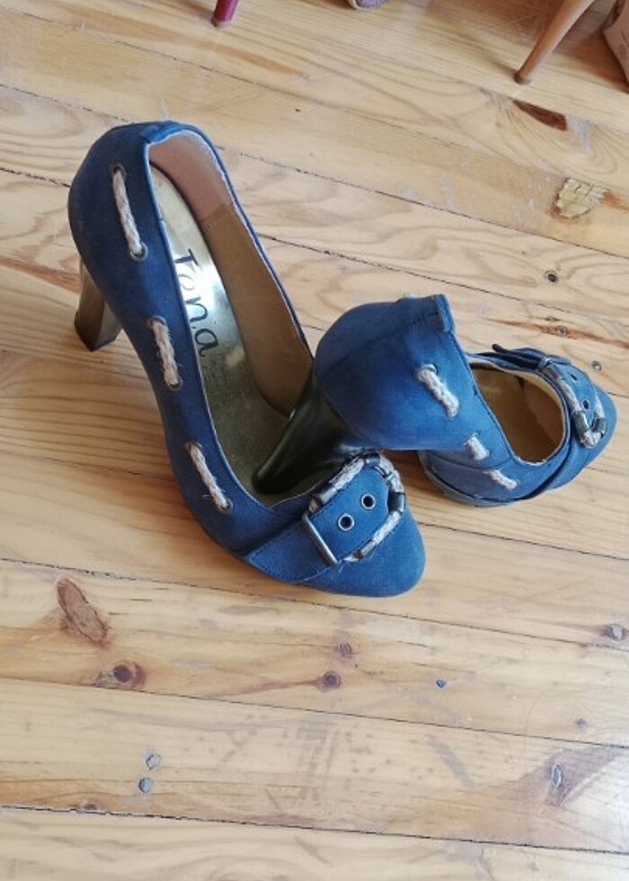 Kot mavisi halat detaylı topuklu ayakkabı