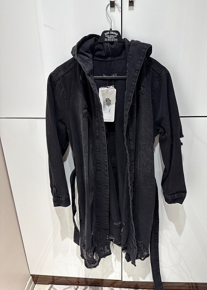 United kullanıma uygun siyah kot kapşonlu uzun ceket.. hiç giyilmemiş etiketli..