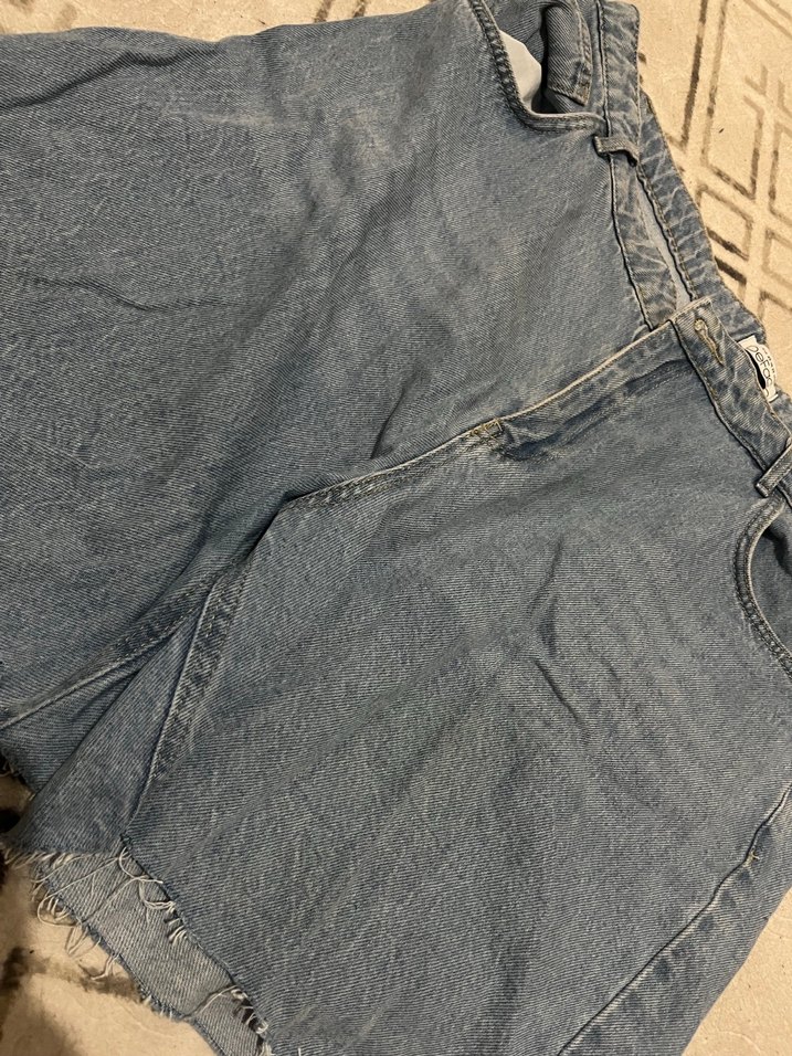 Kot renkte, midi boy, bol kesim denim kadın şort. Desensiz ve normcore tarzıyla günlük kullanıma uygun.