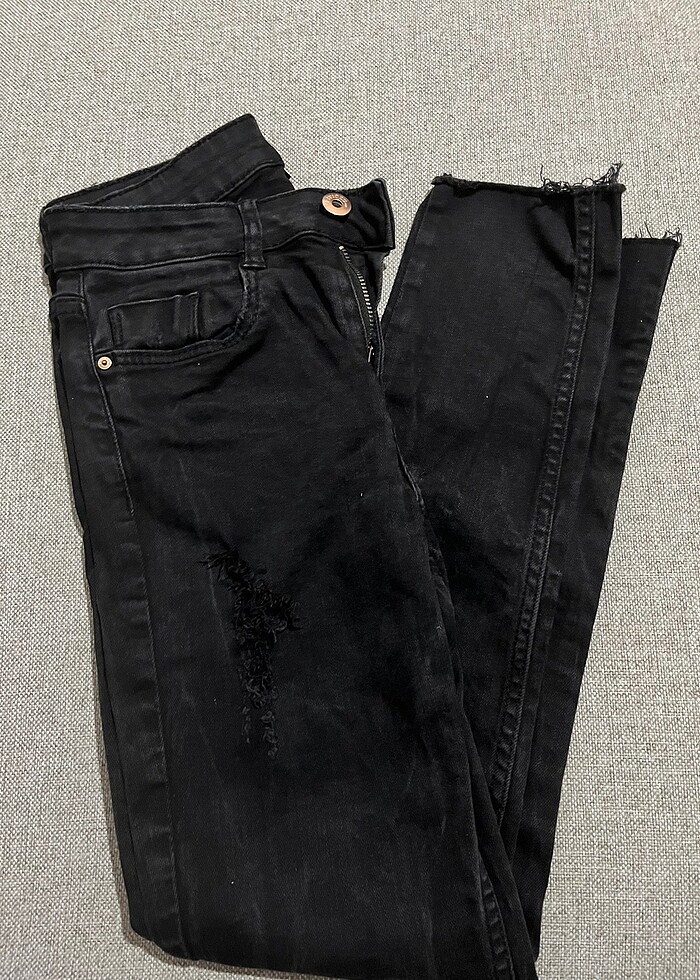 H&M marka yırtık model kot pantolon, diz kısmındaki yırtık yere ayağım takıldığı için daha fazla yırtılmıştır. İkinci görselde belirttim. Onun dışında kusuru yoktur. 34 benden XS