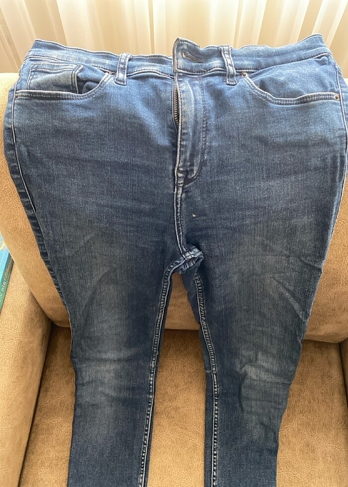 Giyilmiş ama defosu olmayan dar kesim pantolon