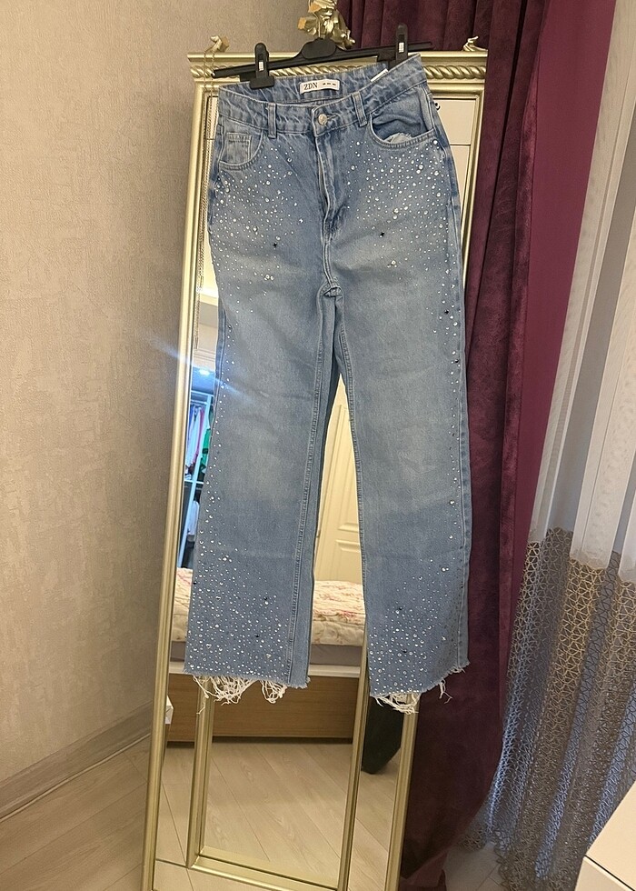 Az kullanılmış taşlı kot pantolon