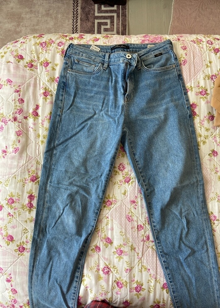 Çok kaliteli bi pantolon vücudu güzel sarıyor. Beden yazısını bulamadım. 36 38 hatta 34 e bile oturabilecek esnek bi pantolon