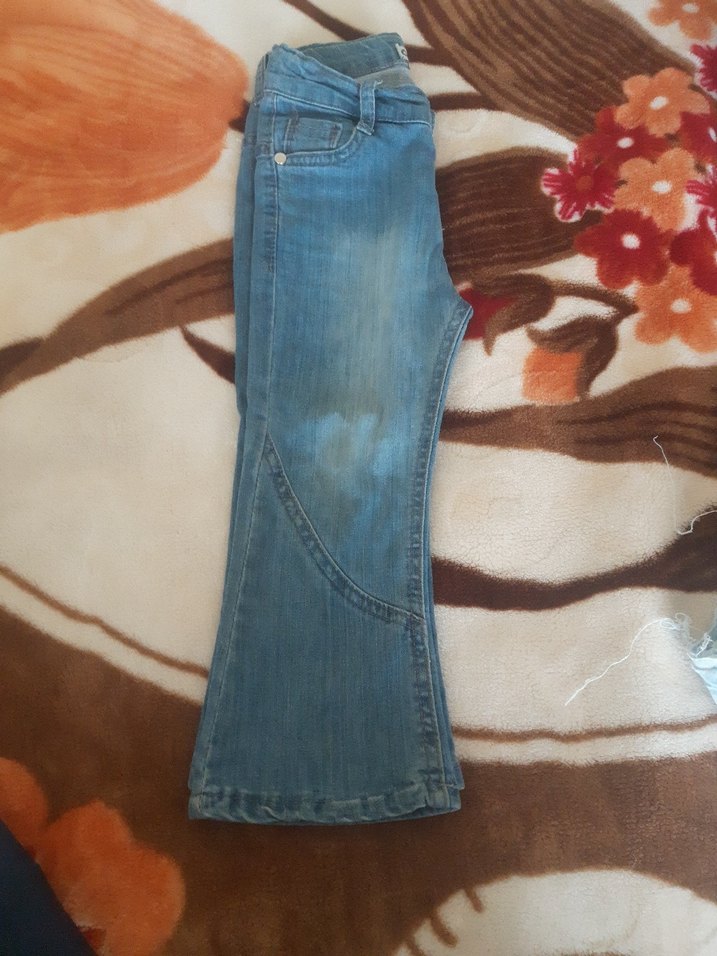 İspanyol paça kız Çocuk pantolon yumuşak kot temiz sorunsuz 2 3uas etiketli ama kalibi baya büyük 4 uasinda bir çocuğa rahat olur yani 13 14kilo bir kız cocuguna