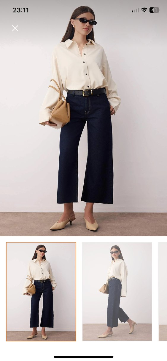 midi boy uzunluğa sahip, açık bej renkli regular fit kot pantolon. Günlük rahat kullanım için uygundur. Hiç giyilmedi etiketi üstünde duruyor bedeni büyük oldu iade süresini kaçırdım o sebeple satıyorum