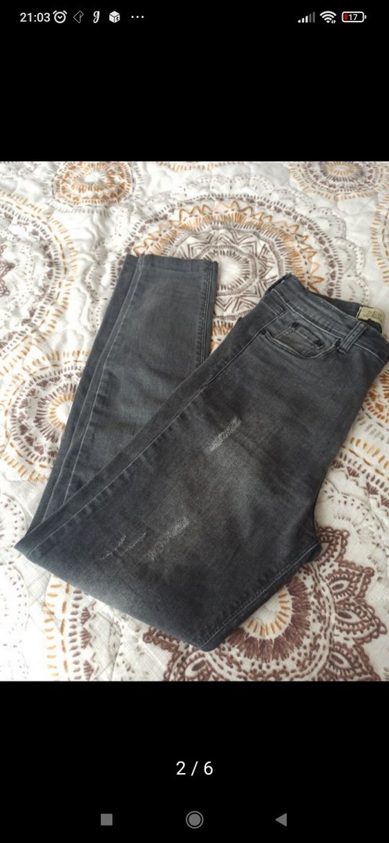 kot pantolon jeans likralı 36 XS rich woman yüksek ve kaliteli deformasyon yoktur kaliteli ve sağlamdır bel 34 esnemeden boy 90 cmGri denimden yapılmış, bol kesim ve normal boyda kadın jean. Günlük kullanım için tokalı detay içerir ve normcore tarzına uygundur.