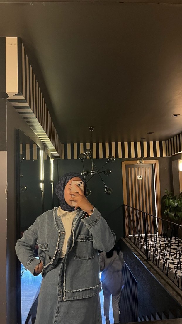 Kot , yüksek yakalı ve uzun kollu kadın denim ceket, rahat ve şık kesimiyle gündelik giyime uygun, desen içermeyen sade tasarıma sahip etek ve ceketli bir takım