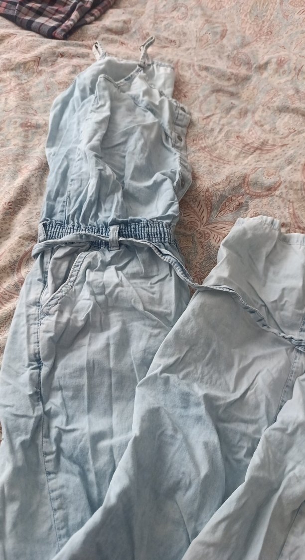 kot rengi keten tulum veli kemerli önden düğmeli az kullanıldı