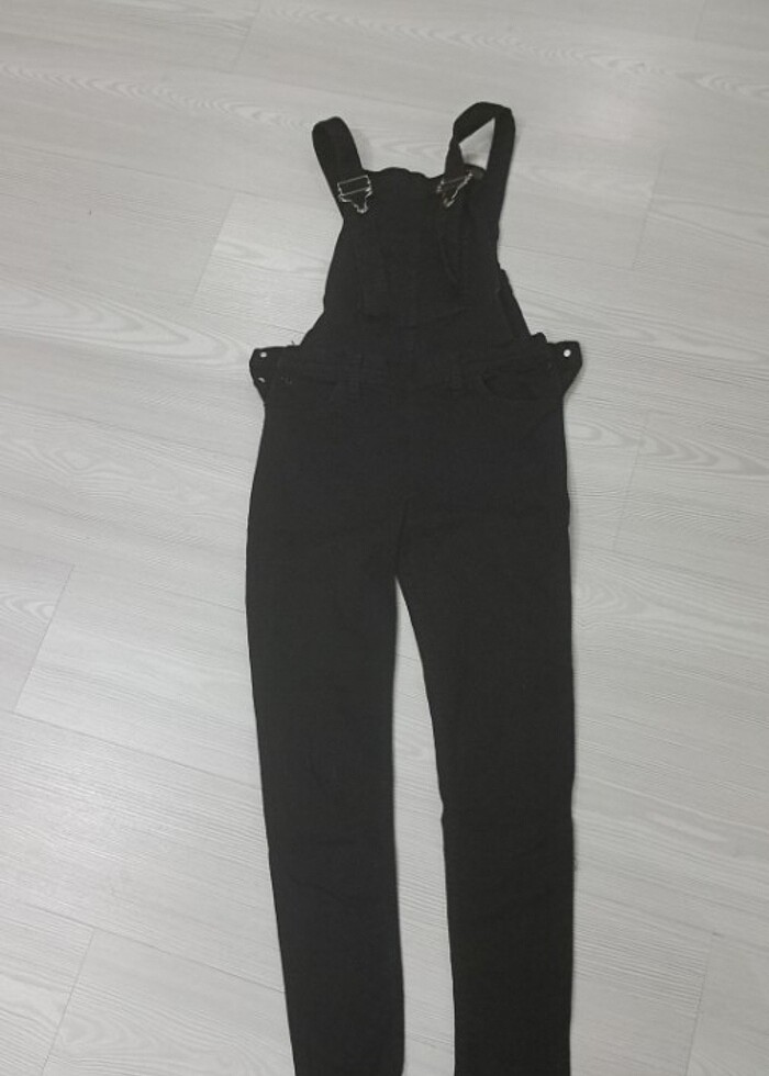 Likralı siyah kot salopet,dar paça