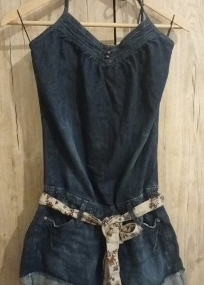 S beden , kot tulum, kumaş kemerli temiz, boyundan kot ip askılı