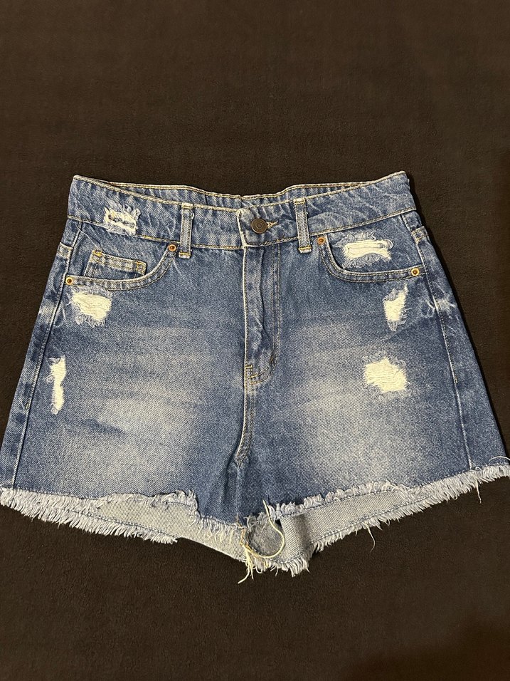 Kadınlar için bağcıklı bel, koyu mavi tonlarında batik desenli, yırtık detaylı, salaş kesim mini denim şort. Sokak stili için uygun. Butikten almıştım.Kot kalitesi çok iyidir Defosu yok sorunsuz
