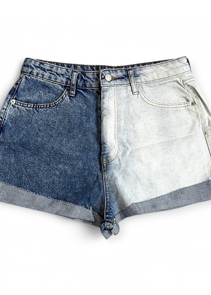 Likralı Çift Renk Kot Şort.