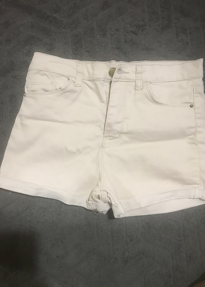 Krem renk kot şort temiz kullanılmış ürün