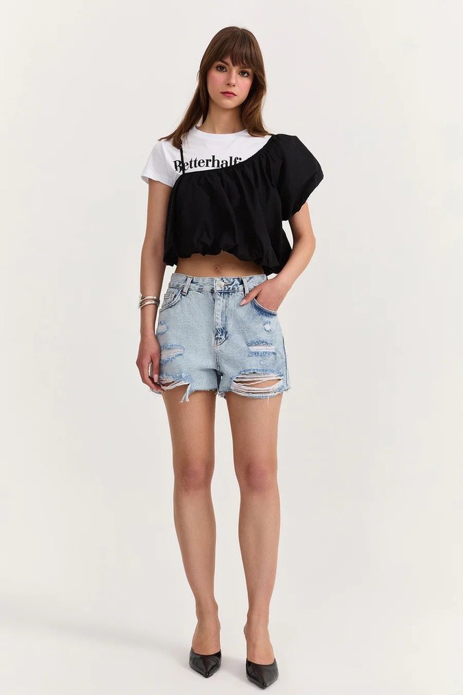 Mini kot şort Quzu marka Etiketli ürün %100 pamuk Yırtık detaylı çift cepli düğme kapatmalı Beden: 36 38 40