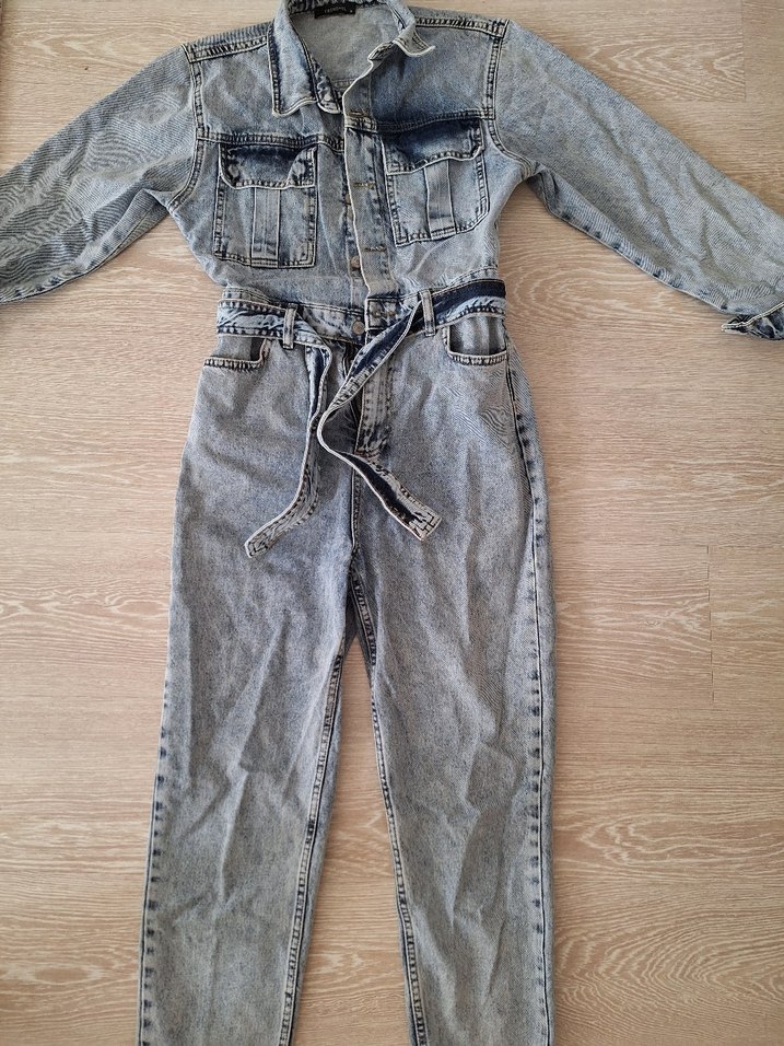 kot kumaştan, kemerli ve bol kesim kadın tulum. Uzun kollu, cep detaylı ve notched yaka ile günlük rahat stil için uygundur. ÇOK GÜZEL KALIBI VAR FAZLALIKTAN SATIYORUM KULLANMIYORUM