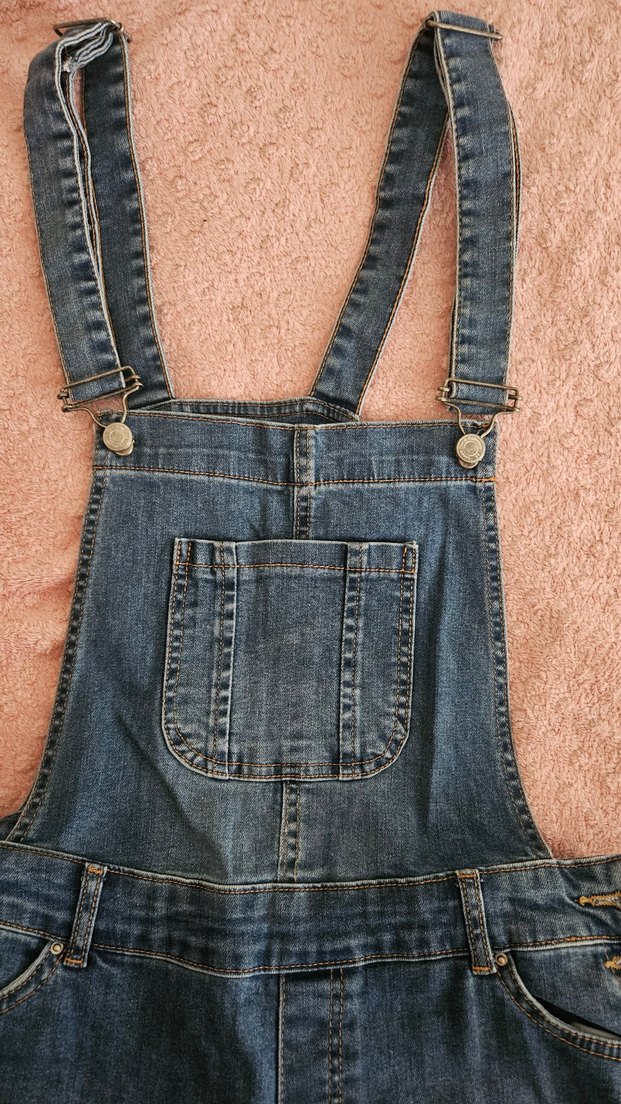 Tokalı askıları ayarlanabilir, ön cepli, mavi kot fitted tulum hasarsız ürün kilo aldığım icin giyemedim