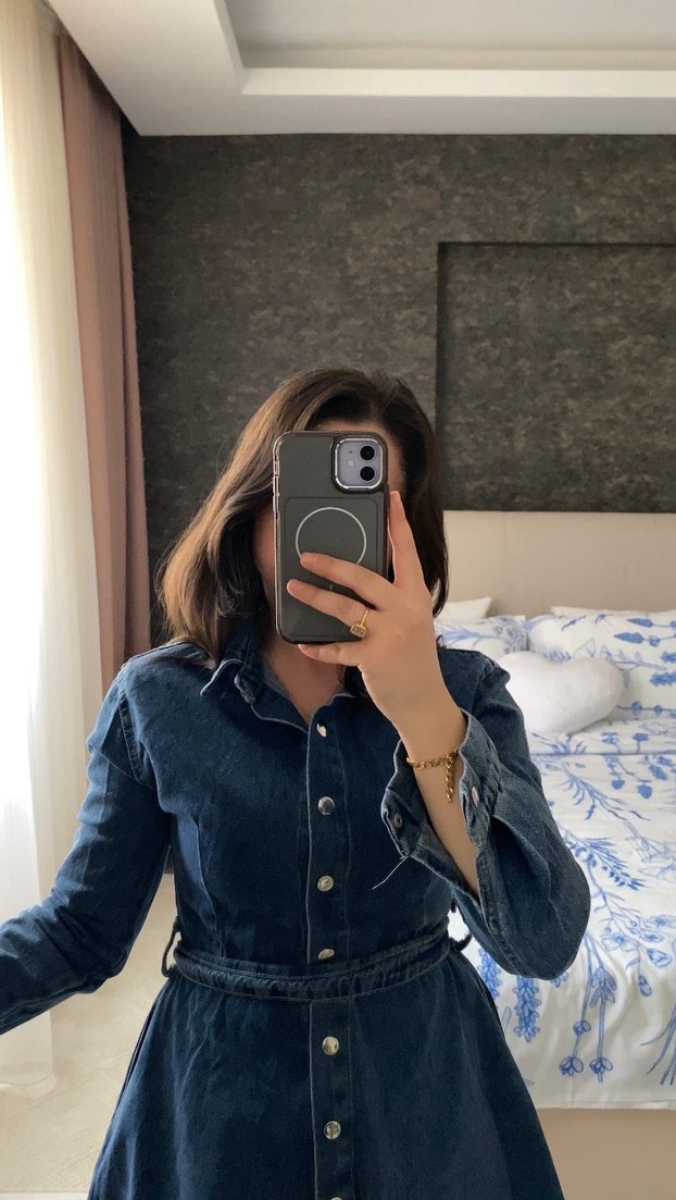 Kot Uzun Kollu Düğmeli Denim elbise