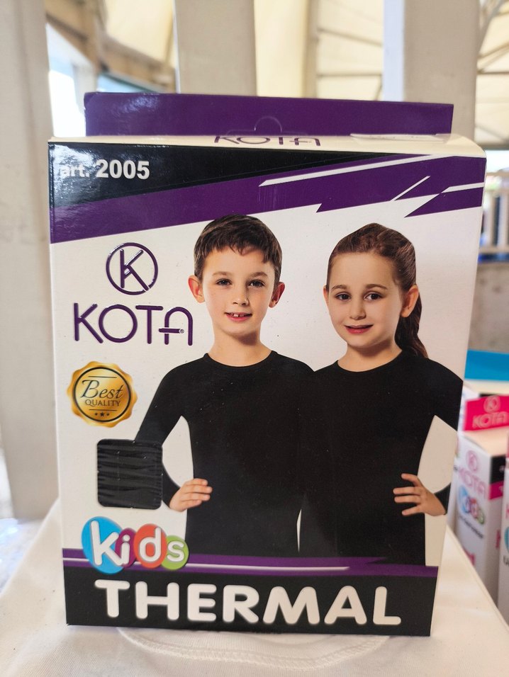 Kota markasına ait siyah termal çocuk t-shirt, yumuşak ve sıcak tutan kumaştan üretilmiştir, baskılı desene sahiptir. bedenleri mevcuttur