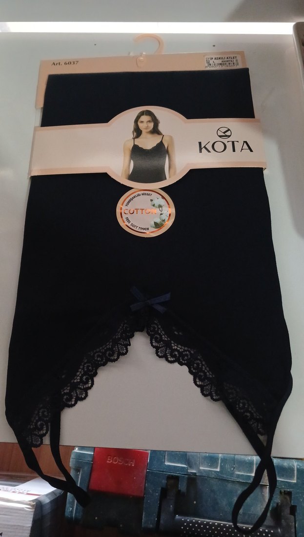 Kota markasına ait siyahkadın iç çamaşırı, gotik tarzda baskılı ve dantel detaylı, rahat kullanım sağlar. Üzerinde 'KOTA & 603' yazısı bulunur.