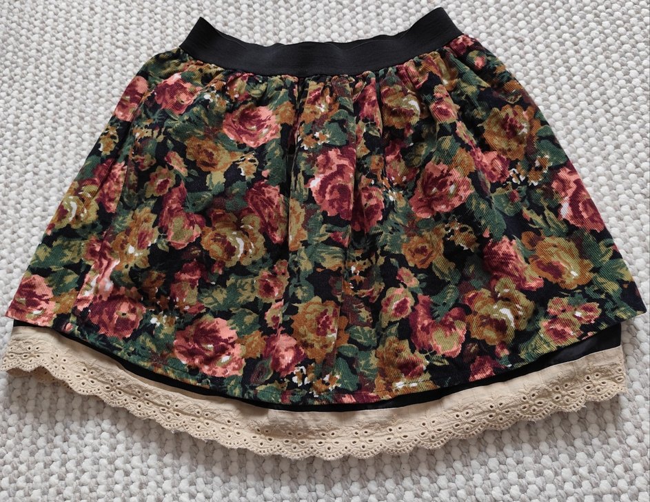 Koton 4-5 yaş. Çiçek desenli, volan detaylı bol kesim midi etek. Yumuşak sentetik kumaştan yapılmış, koyu renkli çok renkli tasarıma ve rahat bel bandına sahiptir. alt astarlı kadife kumaş. iyi günlerde kullanın