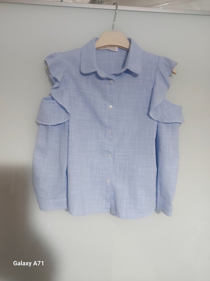 Koton 4-5 yaş kiz cocuk Mavi Kısa Kollu Keten Gömlek