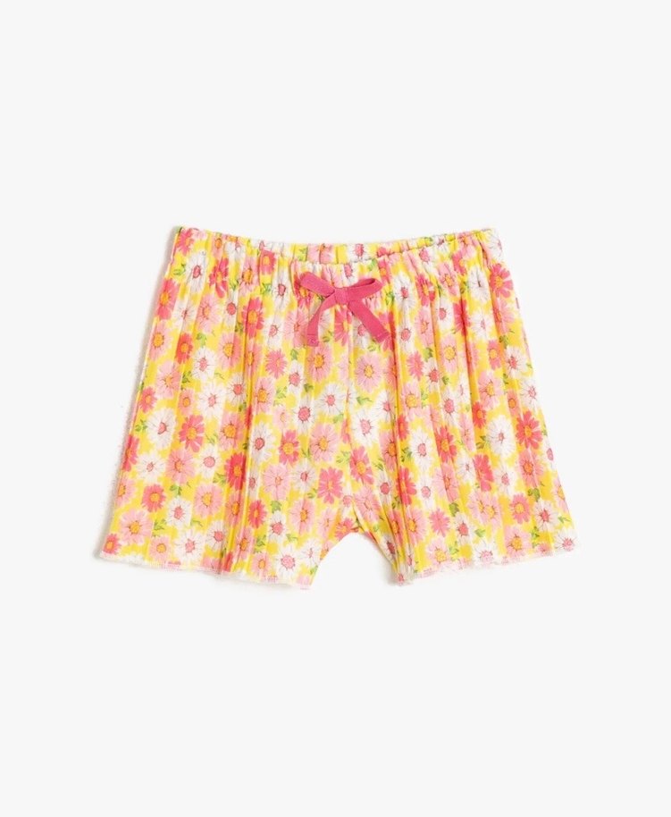 Koton 7-8 yaş Sarı Çicekli Pileli Süs Bağcıklı Normal Bel Bol Kesim