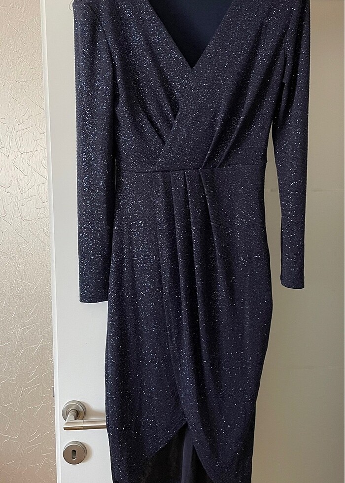 Koton, M beden, üzerinde pulları olan midi boy lacivert elbise. Çok az giyildi, herhangi bir kusuru yok. #abiye #elbise #koton