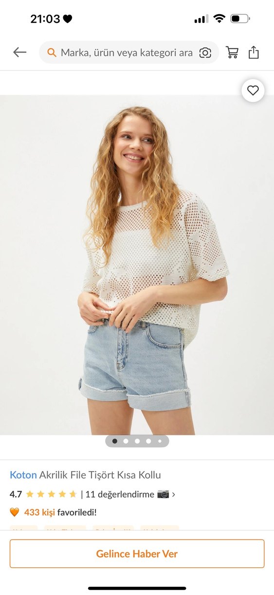 Koton akrilik file tişört kısa kollu M beden defosu yok yeni bir iki defa giydim  ekru renk