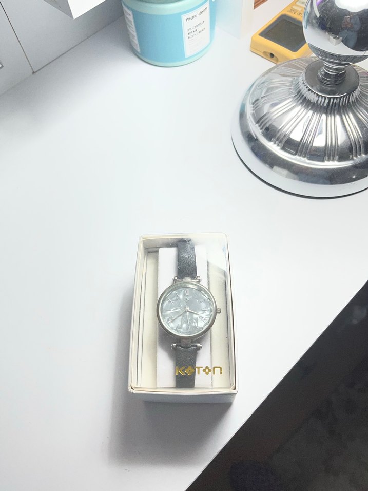 Koton markalı, antrasit renkli ve kemerli kayışa sahip kadın saati, modern klasik tasarımıyla zarif bir Paris tarzı sunar. ⌚