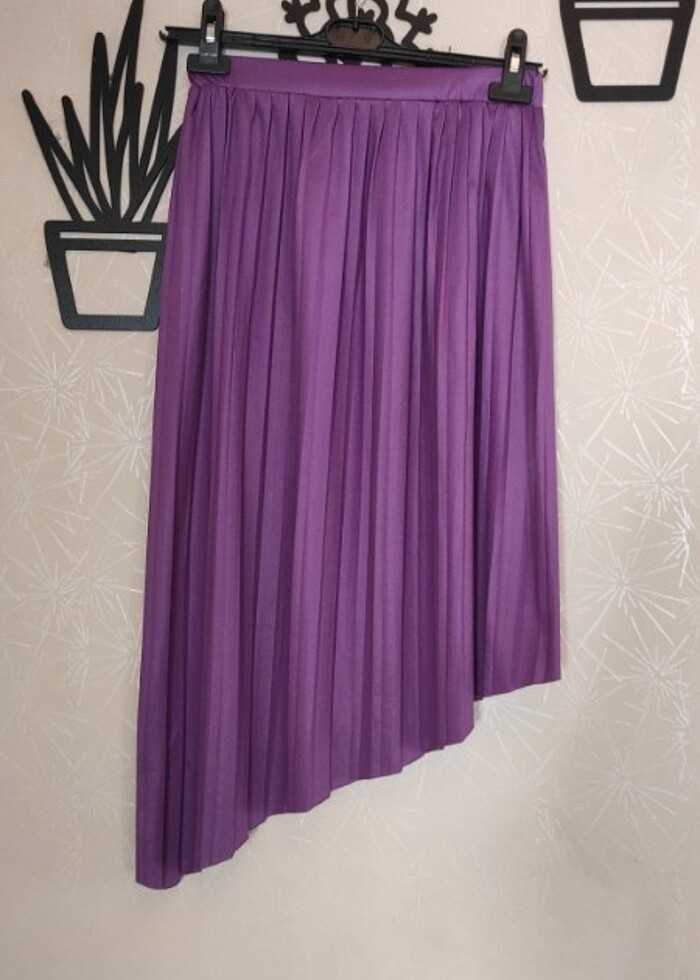 L beden lila renkli hiç kullanılmamış fakat etiket mevcut değil asimetrik kesim etek