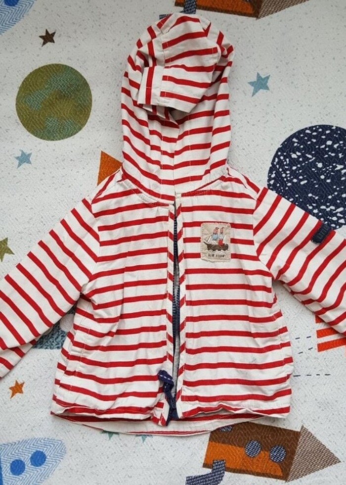 12/18 ay 80_86 ay bedenlidir. Ara mevsimler için çok kullanışlı. Sadece son fotodaki gibi ufak bir yerinde boya lekesi vardır.