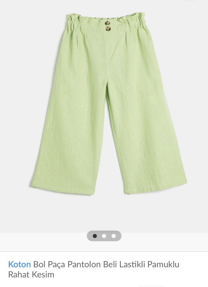 Pastel yeşil bol paça pantolon, pile detaylı ve beli lastikli, pamuklu rahat kumaştan üretilmiştir. Günlük kullanıma uygundur. #pantolon