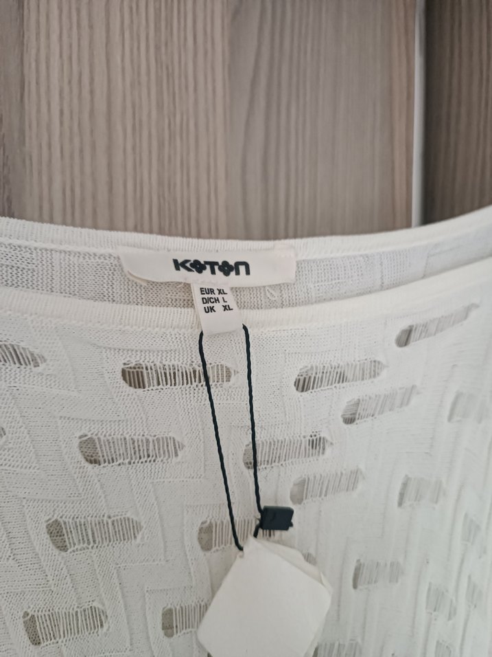 Koton marka beyaz renkli, geometrik desenli ve nefes alabilen örgü kumaştan üretilmiş fotoğrafta gözüktüğü gibi hiç kullanılmadı temiz sıfır ürün