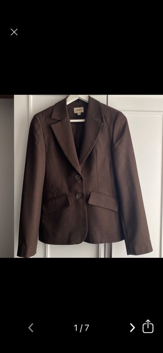 Kahverengi balıksırtı desenli örme kumaş. klasik kesim kadın blazer ceket. Tertemiz sıfır ürün ayarında. Ofis kullanımı için uygundur.