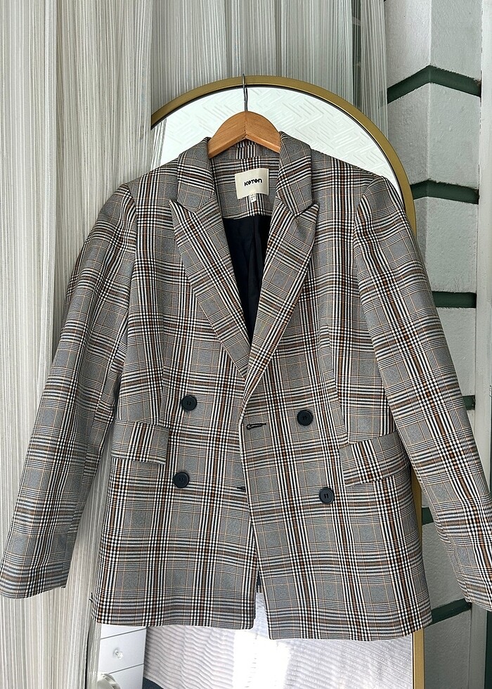 Kareli dar kesim belden oturmalı blazer ceket 34 beden hiç bir sorunu yoktur 2 kez giyildi Üstte duruşu istenirse atarım