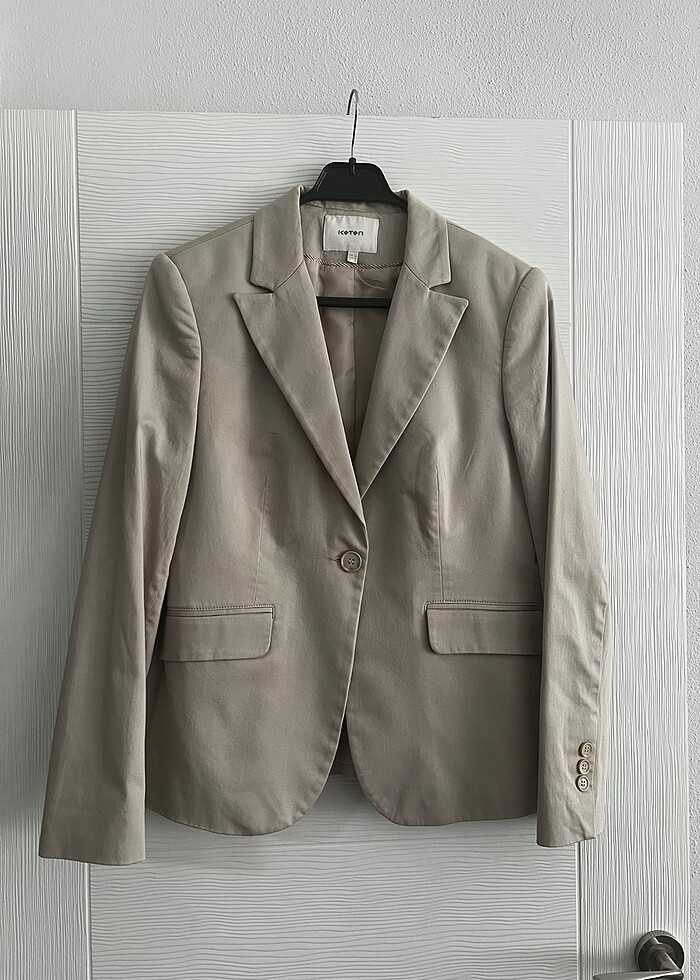 Az kullanılmıştır. Bej pudra arası renktir. Omuzdan 65cm kuru temizleme yapılmıştır. Omuz kısmında vatka mevcuttur.