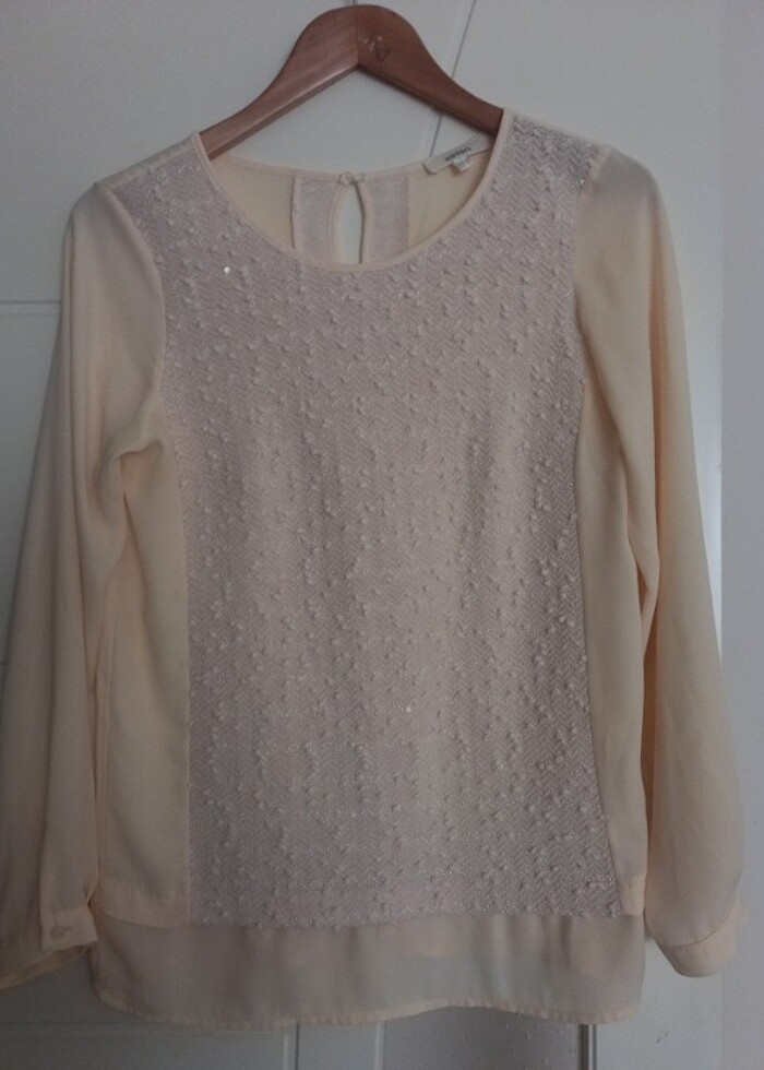 Koton marka 36 beden pudra rengi, ön kısmı pul detaylı , deformasyonu olmayan şık bluz